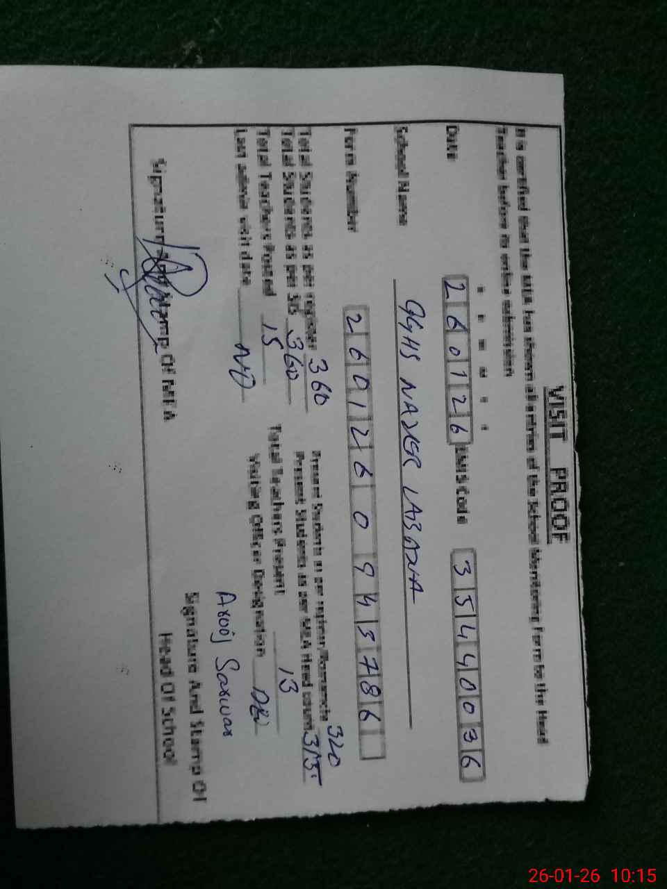 | Name: AR**** SA**** Designation: (School Headmaster's/Headmistress's) SST Phone/Cell Number: 03**** |