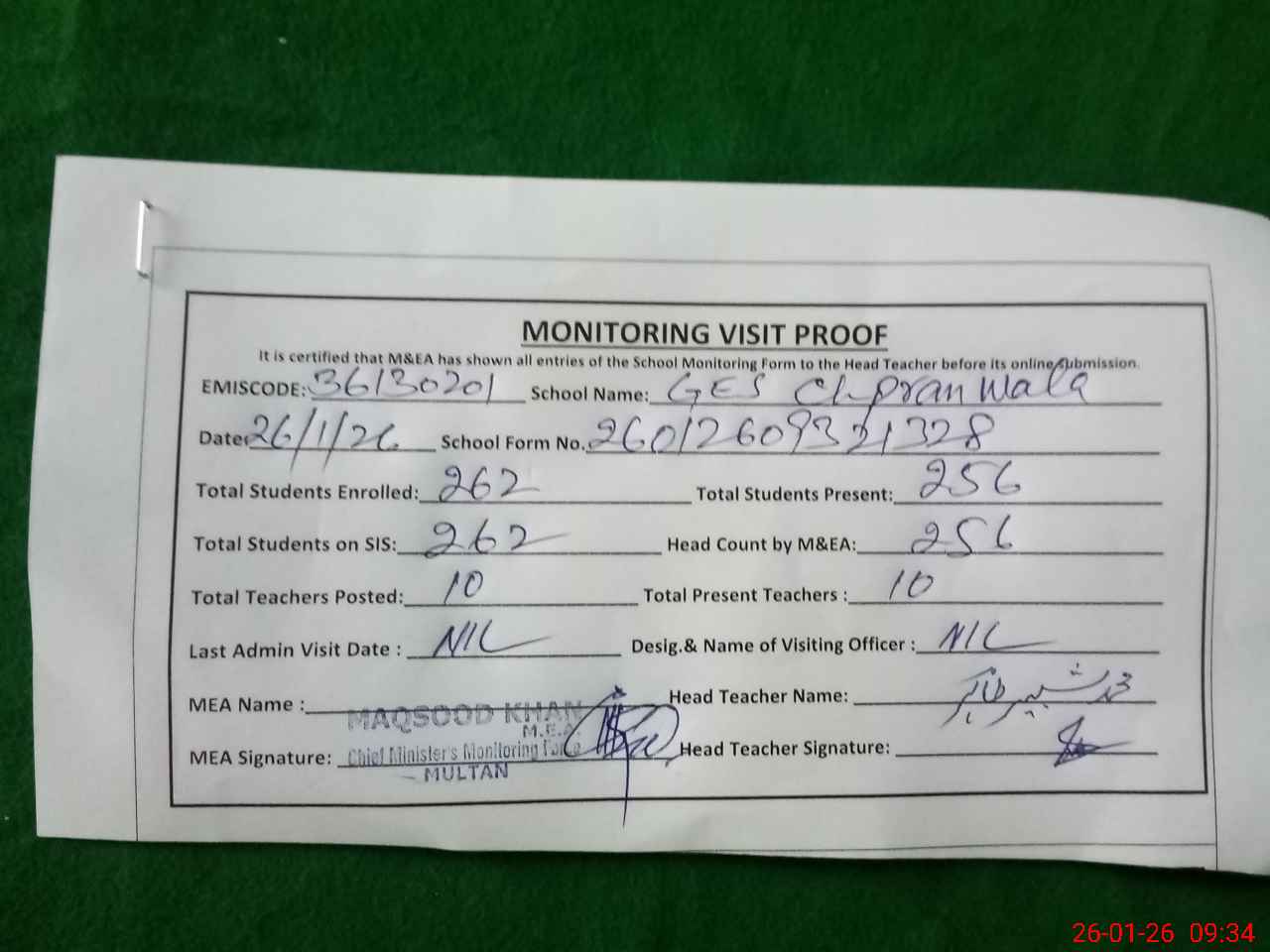 | EMIS Code: 36130201 | Name of School: GES CHPRAN WALA MOZA CHAPRAN WALA P/O TATAY PUR | |||