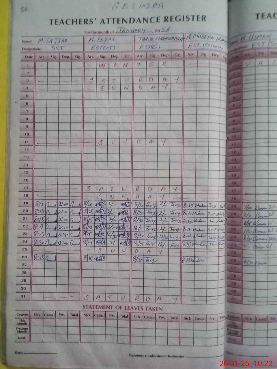 | Leave | Duty | Absent | Maternity | Medical | Ex- Pak |