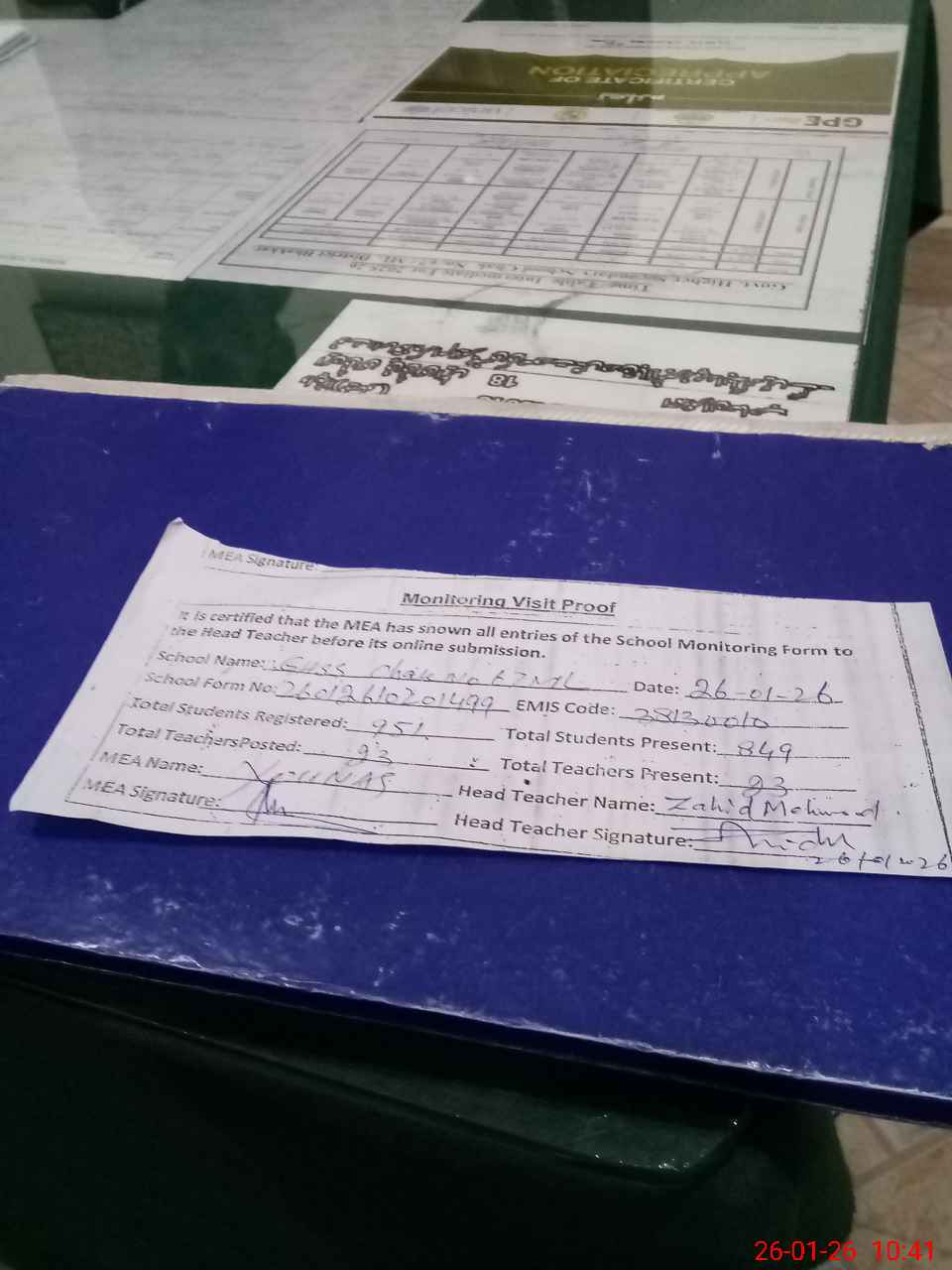 | Certified that this School was Inspected by the Undersigned MEA/DMO Today and the Information Stated Above is as Per Record. | |||||