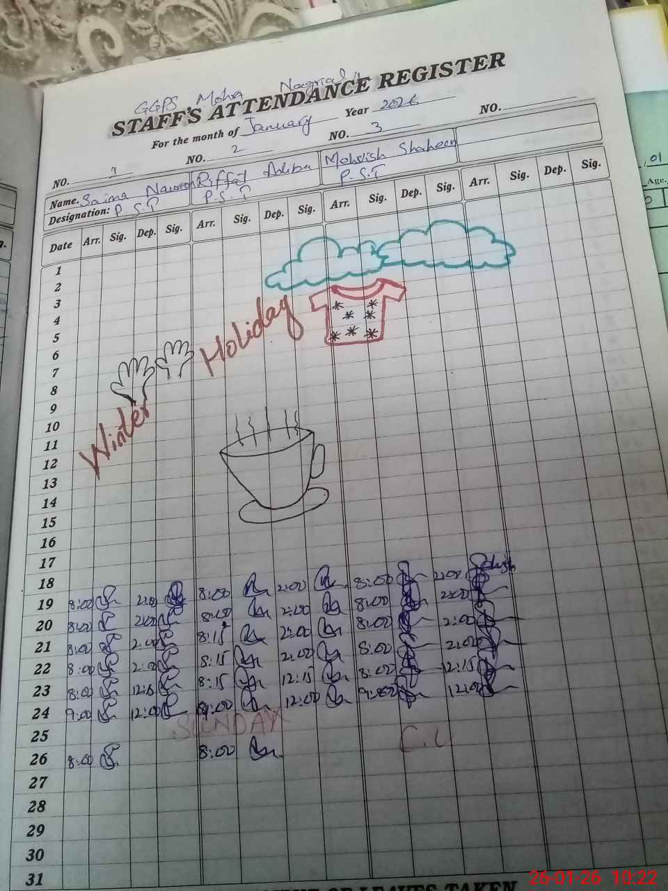 | CNIC | Full Name | Designation | R/C | Absence During Last Calender Month |