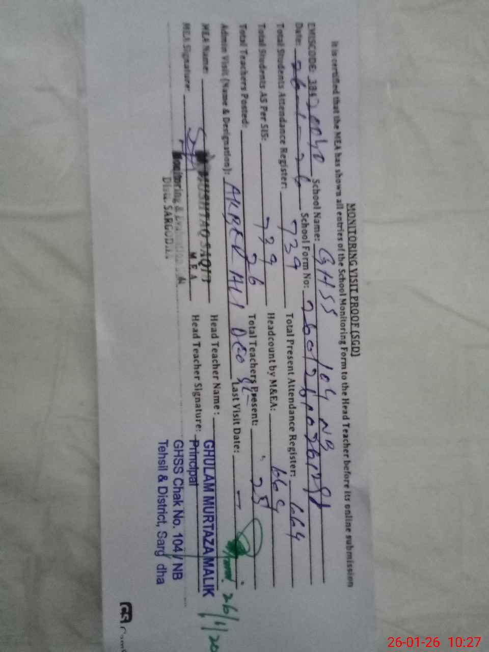 | EMIS Code: 38420040 | Name of School: GHSS CHAK NO.104 NB | |||