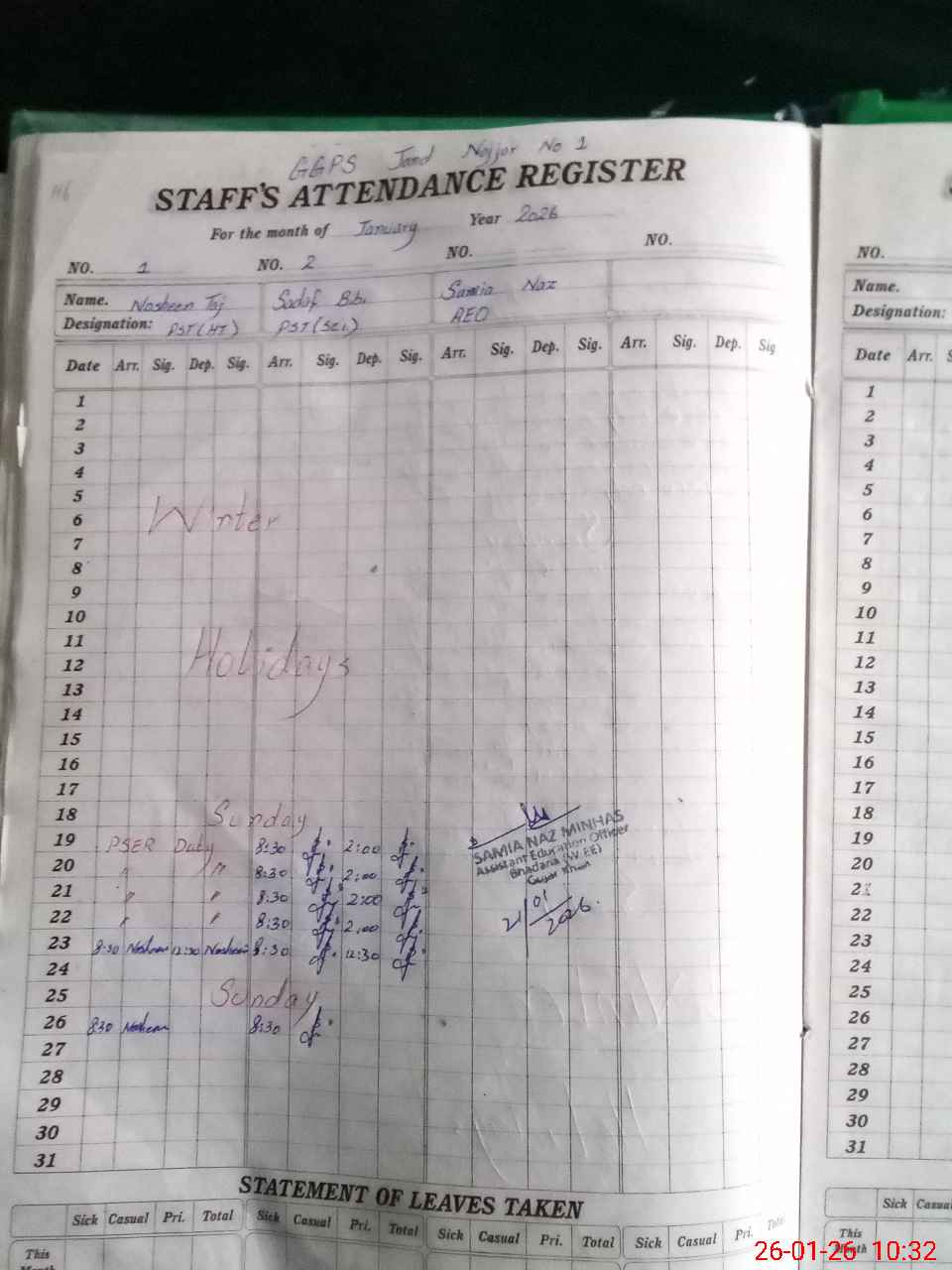| Name: No**** Ta**** Designation: (School Headmaster's/Headmistress's) PST Phone/Cell Number: 03**** |