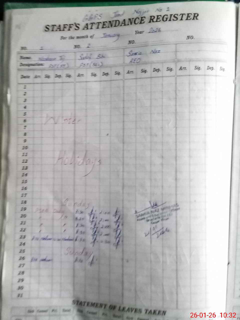 | CNIC | Full Name | Designation | R/C | Absence During Last Calender Month |