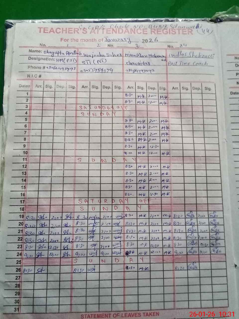 | Name: Sh**** An**** Designation: (School Headmaster's/Headmistress's) PST Phone/Cell Number: 03**** |