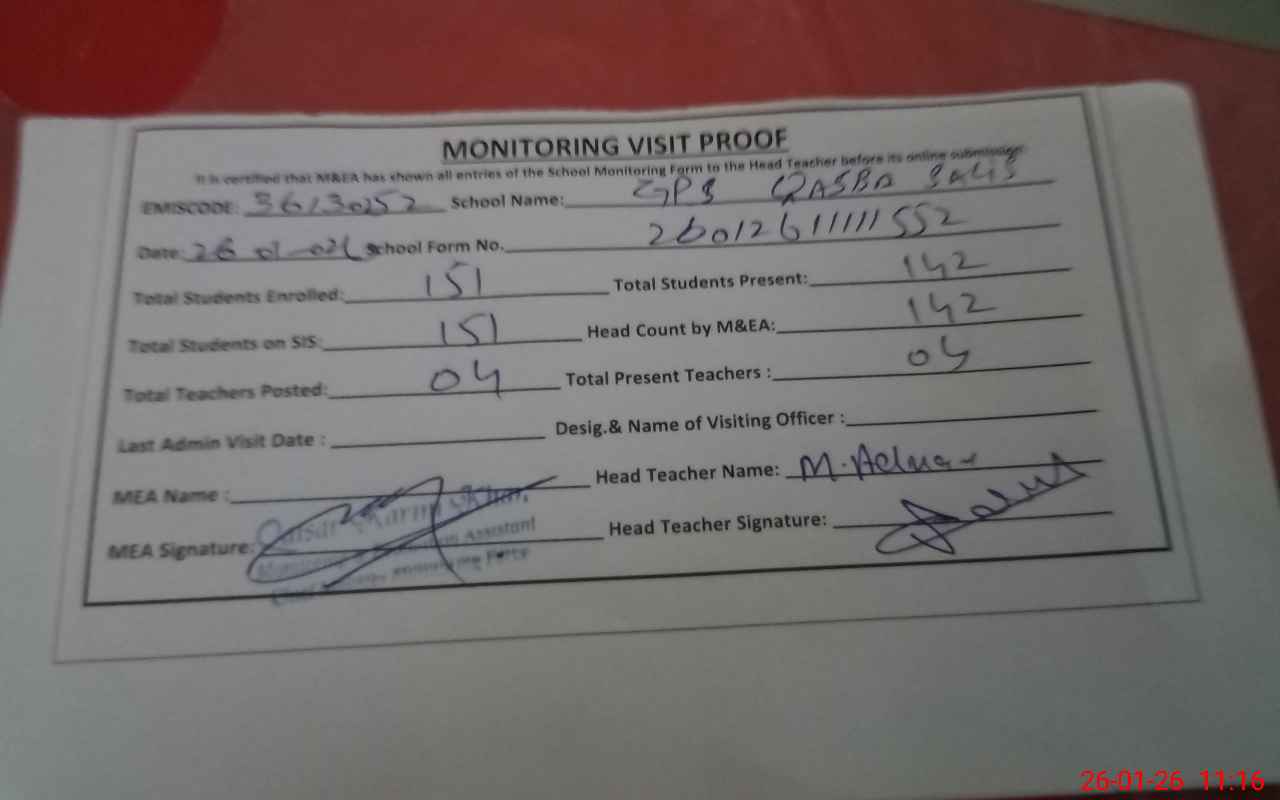 | EMIS Code: 36130252 | Name of School: GPS QASBA SALIS | |||