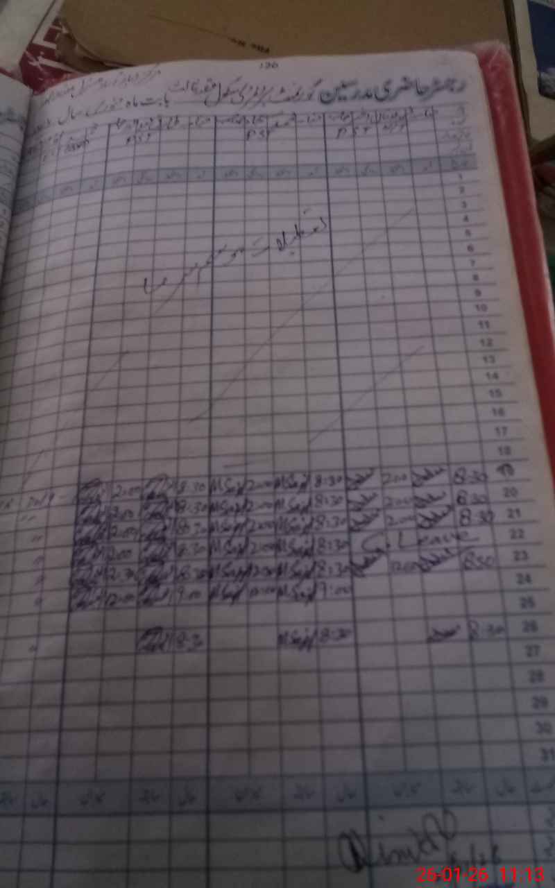 | CNIC | Full Name | Designation | R/C | Absence During Last Calender Month |