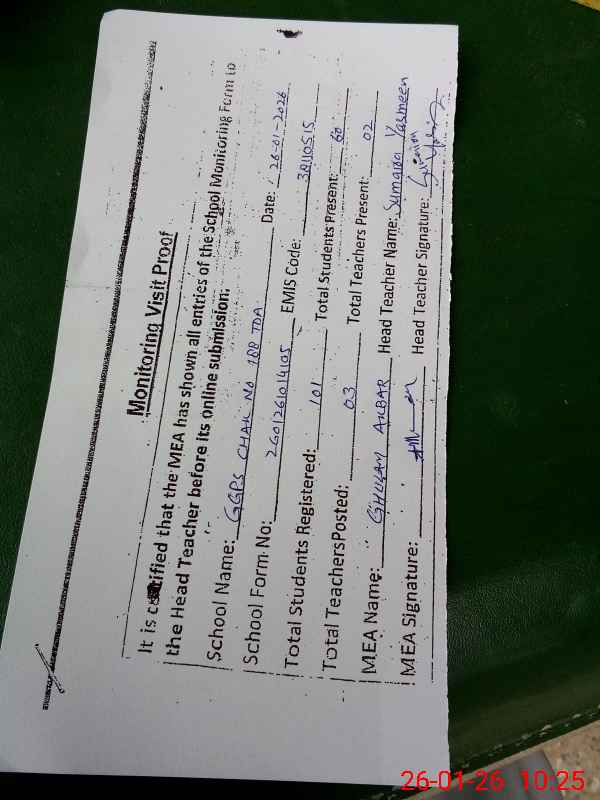 | Monitoring Date: 26-01-2026 | Start Time: 26-01-2026 10:07 AM | End Time: 26-01-2026 10:25 AM | Name of MEA: Gh**** Ak**** Kh**** | |
