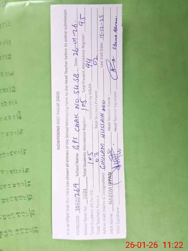 | EMIS Code: 38420269 | Name of School: GPS CHAK NO.54 SB | |||