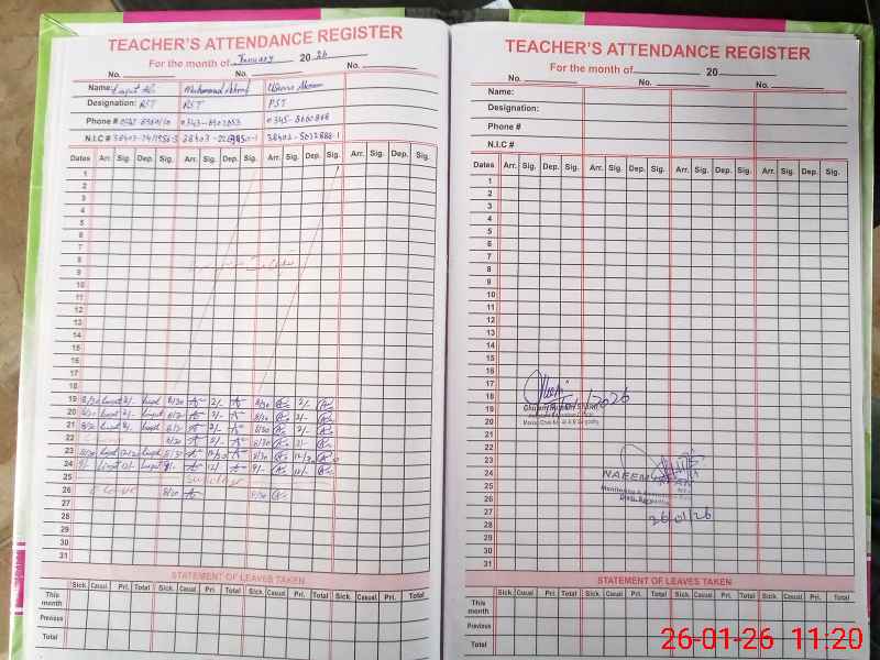 | Name: LI**** AL**** Designation: (School Headmaster's/Headmistress's) PST Phone/Cell Number: 03**** |