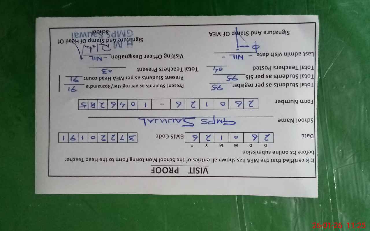| Attendance Register | Head Teacher | MEA with School | Visit Proof |