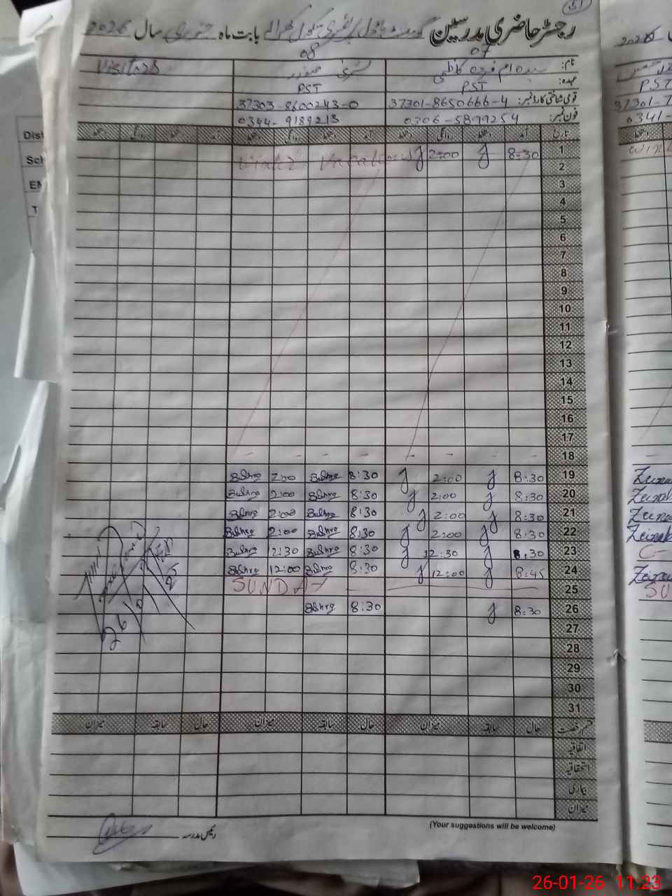 | Name: Ta**** No**** Designation: (School Headmaster's/Headmistress's) PST/PTC/JV Phone/Cell Number: 03**** |