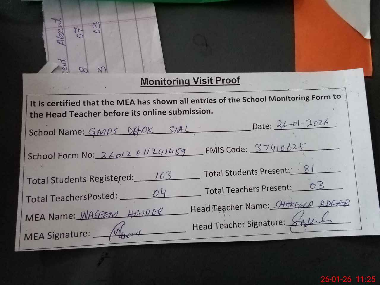| EMIS Code: 37410625 | Name of School: GMPS DHOK SIAL | |||