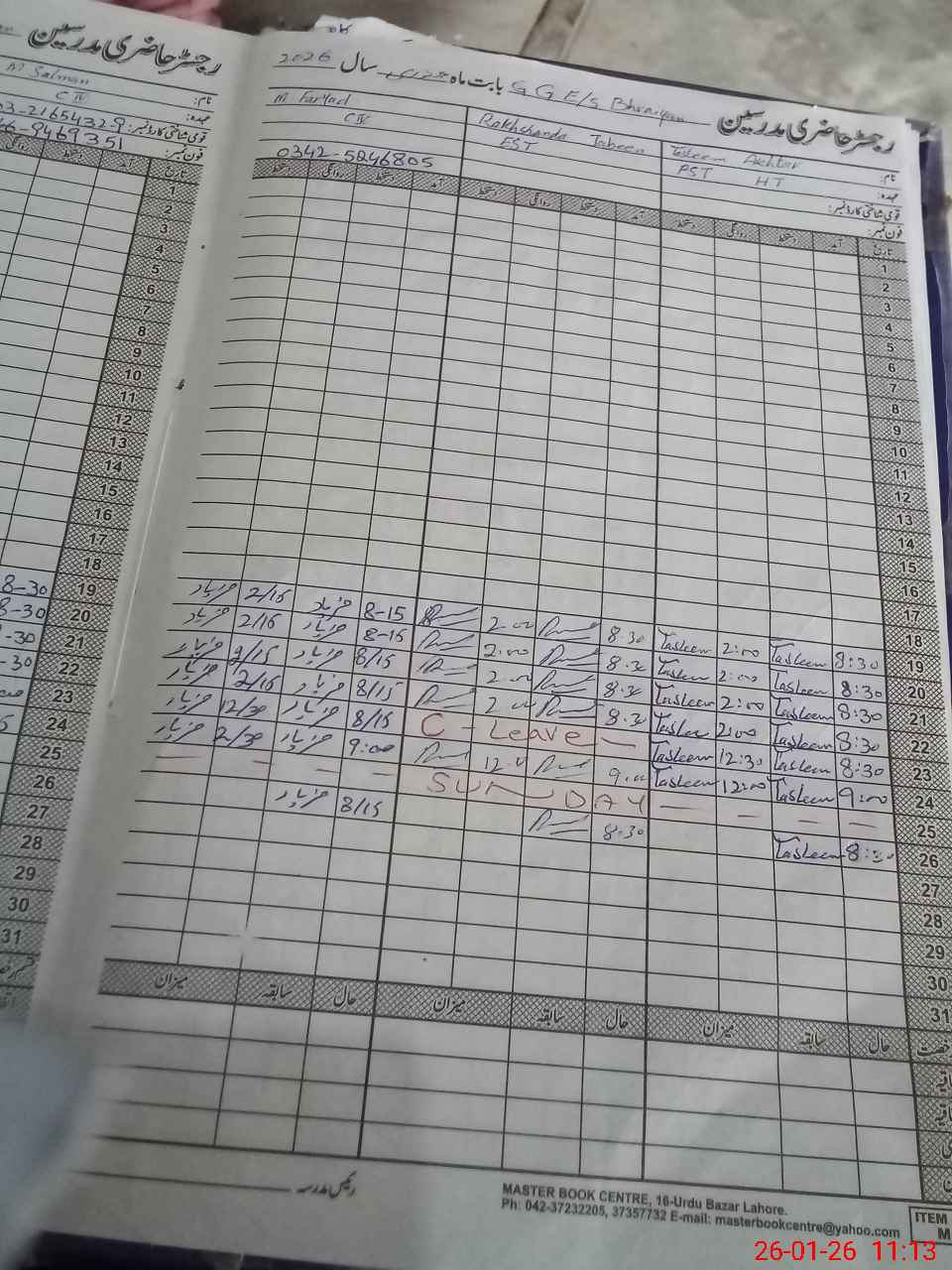 | CNIC | Full Name | Designation | R/C | Absence During Last Calender Month |