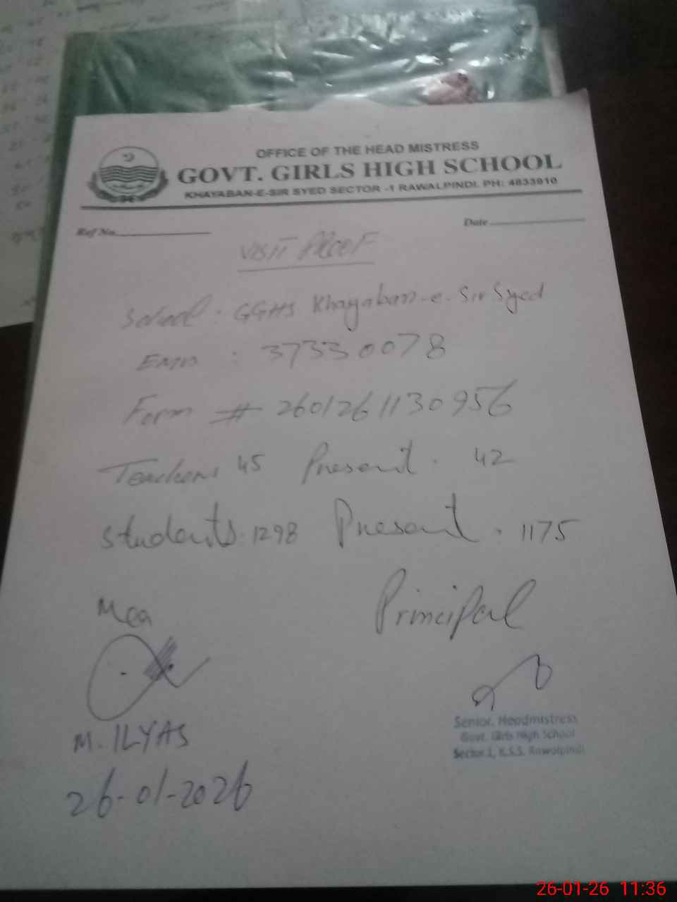 | EMIS Code: 37330078 | Name of School: GGHS KHAYABAN-I-SIR SYED SEC-I | |||