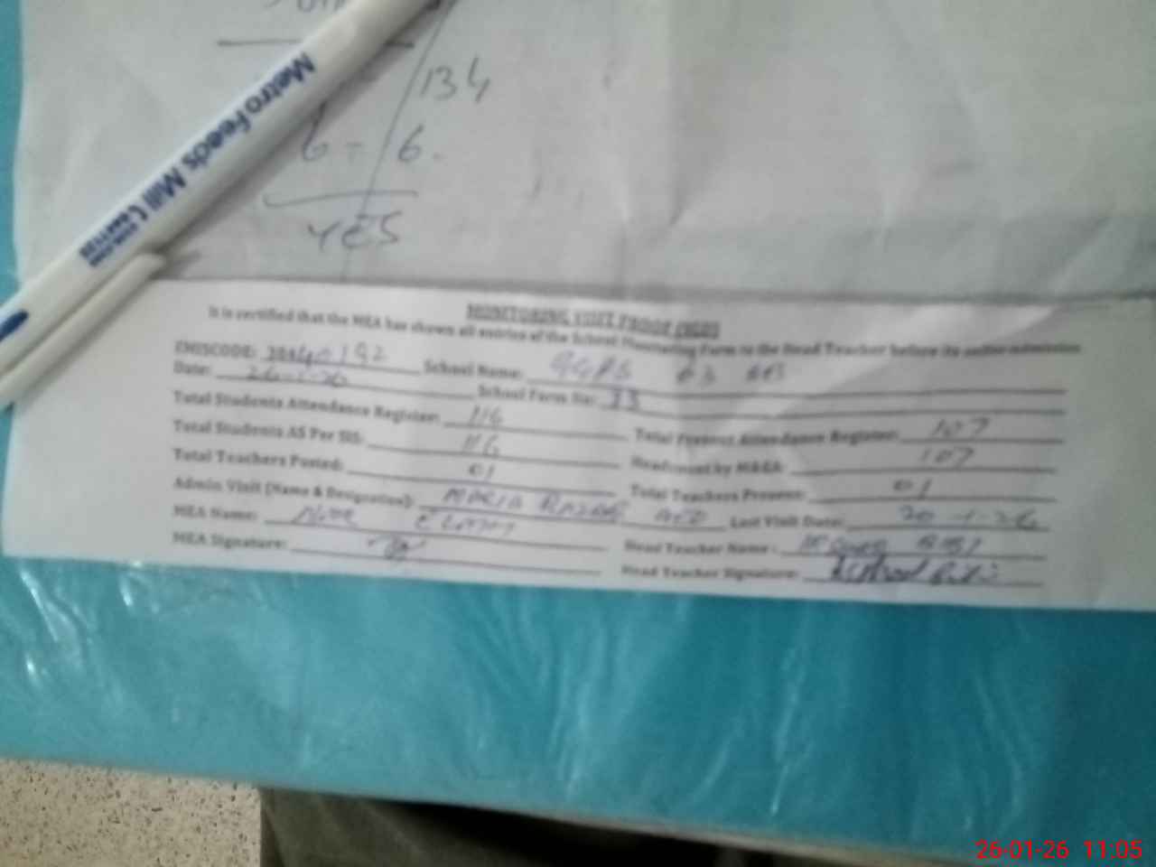 | Attendance Register | Head Teacher | MEA with School | Visit Proof |