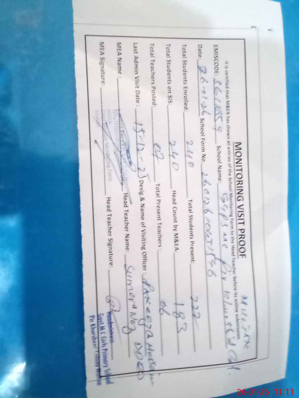 | EMIS Code: 36110359 | Name of School: GGPS MC PIR KHURSHEED COLONY MULTAN | |||