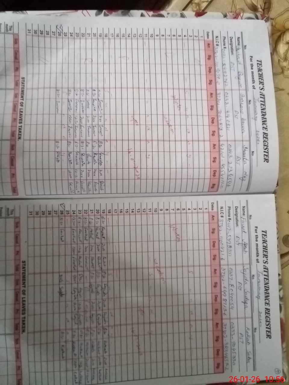 | Name: YA**** Designation: (School Headmaster's/Headmistress's) S.S.T.(Arts) Phone/Cell Number: 03**** |