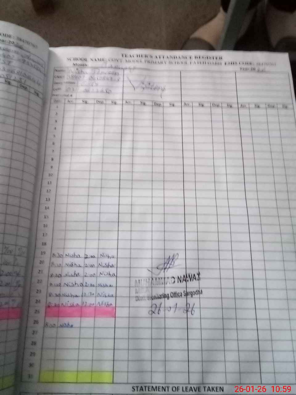 | Name: Al**** Af**** Designation: (School Headmaster's/Headmistress's) PST Phone/Cell Number: 03**** |