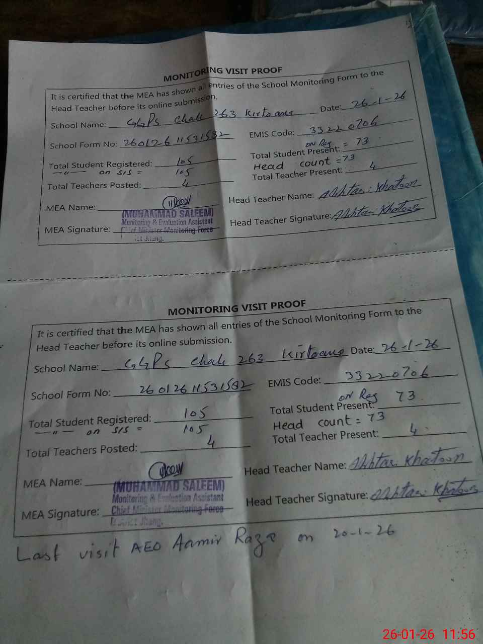 | EMIS Code: 33220706 | Name of School: GGPS CHAK 263 JB KIRTOANA | |||