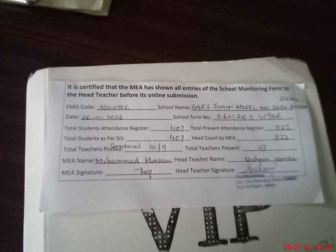 | Certified that this School was Inspected by the Undersigned MEA/DMO Today and the Information Stated Above is as Per Record. | |||||