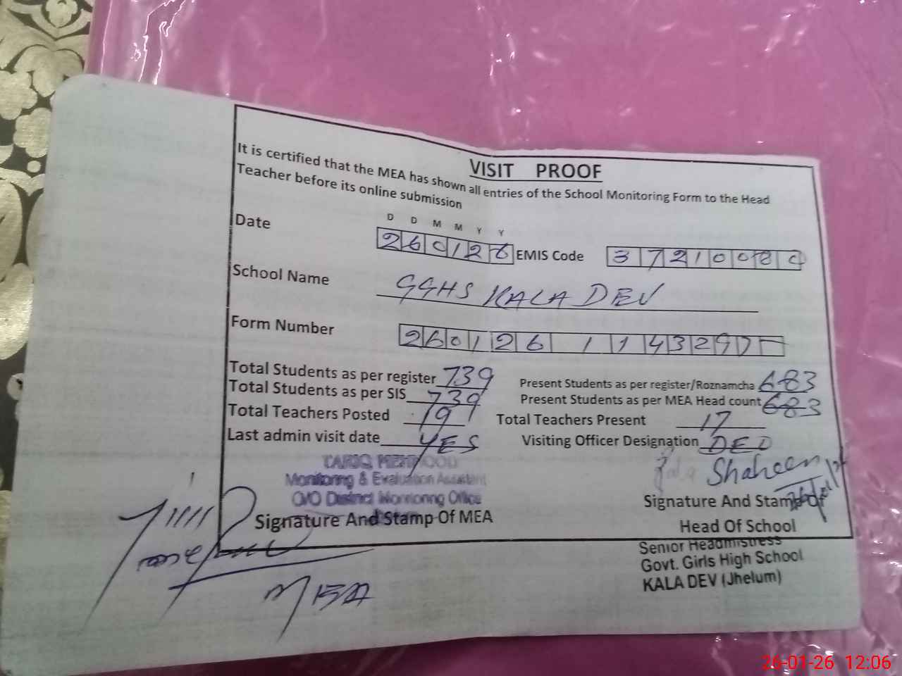 | EMIS Code: 37210080 | Name of School: GGHS KALA DEV | |||