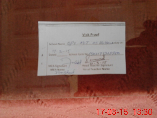 | Attendance Register | Head Teacher | MEA with School | Visit Proof |