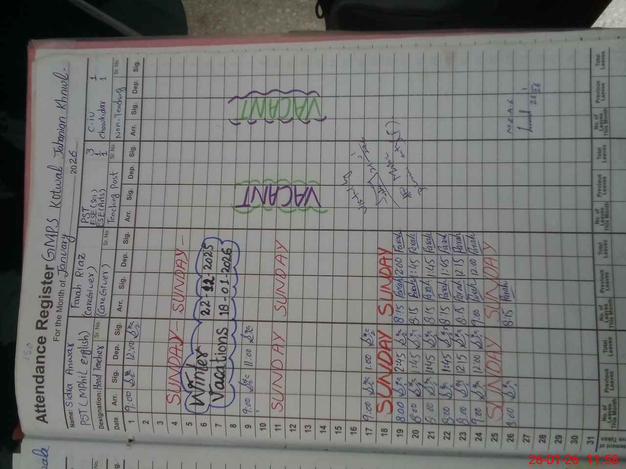 | Name: SI**** AN**** Designation: (School Headmaster's/Headmistress's) PST Phone/Cell Number: 03**** |