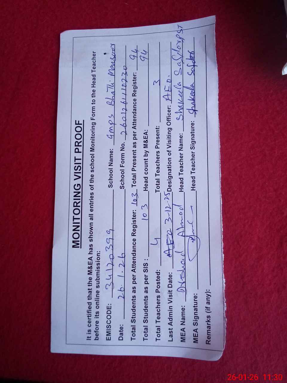 | EMIS Code: 34120399 | Name of School: GMPS BHATTI MANSOOR | |||
