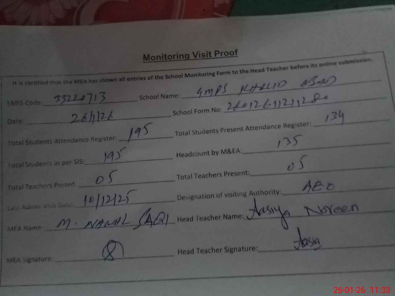 | EMIS Code: 33220713 | Name of School: GMPS KHALID ABAD | |||