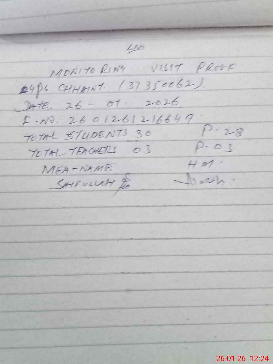 | Monitoring Date: 26-01-2026 | Start Time: 26-01-2026 11:55 AM | End Time: 26-01-2026 12:25 PM | Name of MEA: Sa**** | |