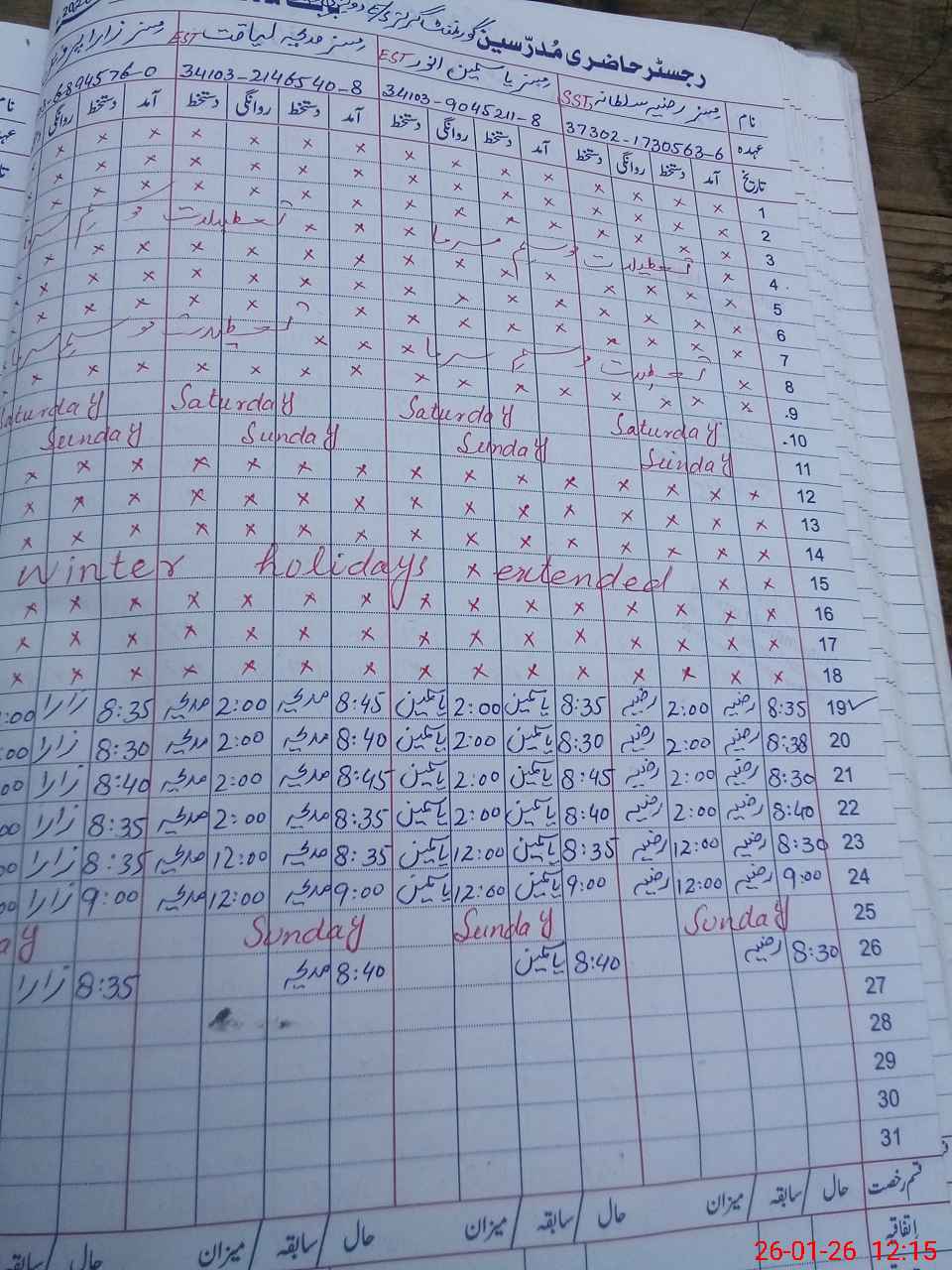 | CNIC | Full Name | Designation | R/C | Absence During Last Calender Month |