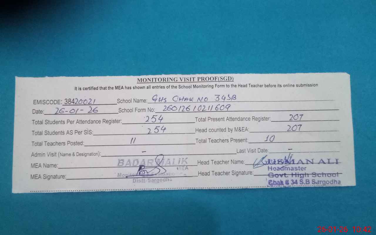 | EMIS Code: 38420021 | Name of School: GHS CHAK NO.34 SB | |||