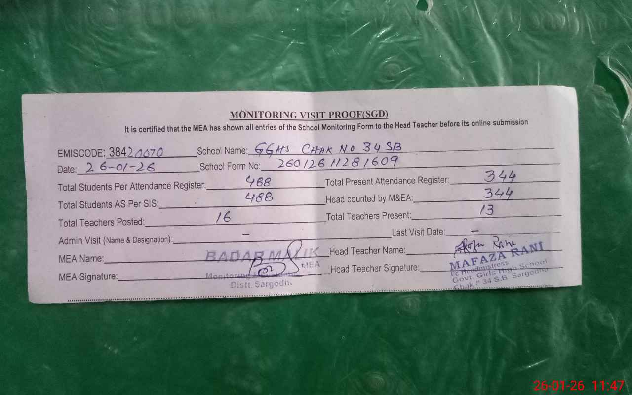 | EMIS Code: 38420070 | Name of School: GGHS CHAK NO. 34 SB SARGODHA | |||