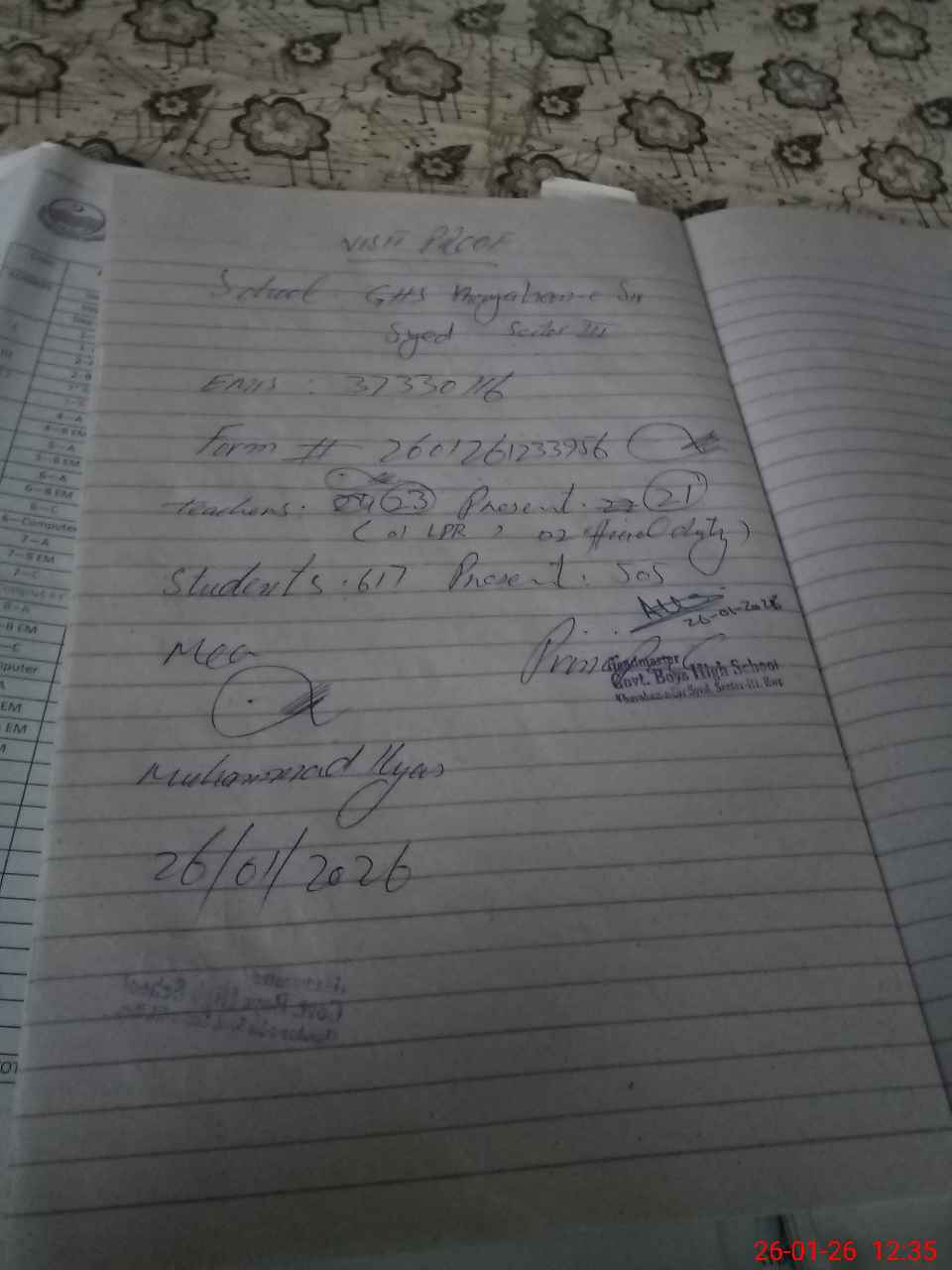 | EMIS Code: 37330116 | Name of School: GHS KHAYABAN-E-SIR SYED SECTOR 3 | |||
