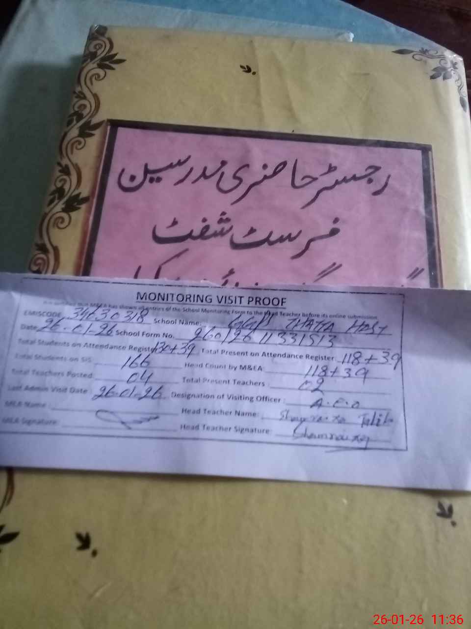 | Attendance Register | Head Teacher | MEA with School | Visit Proof |