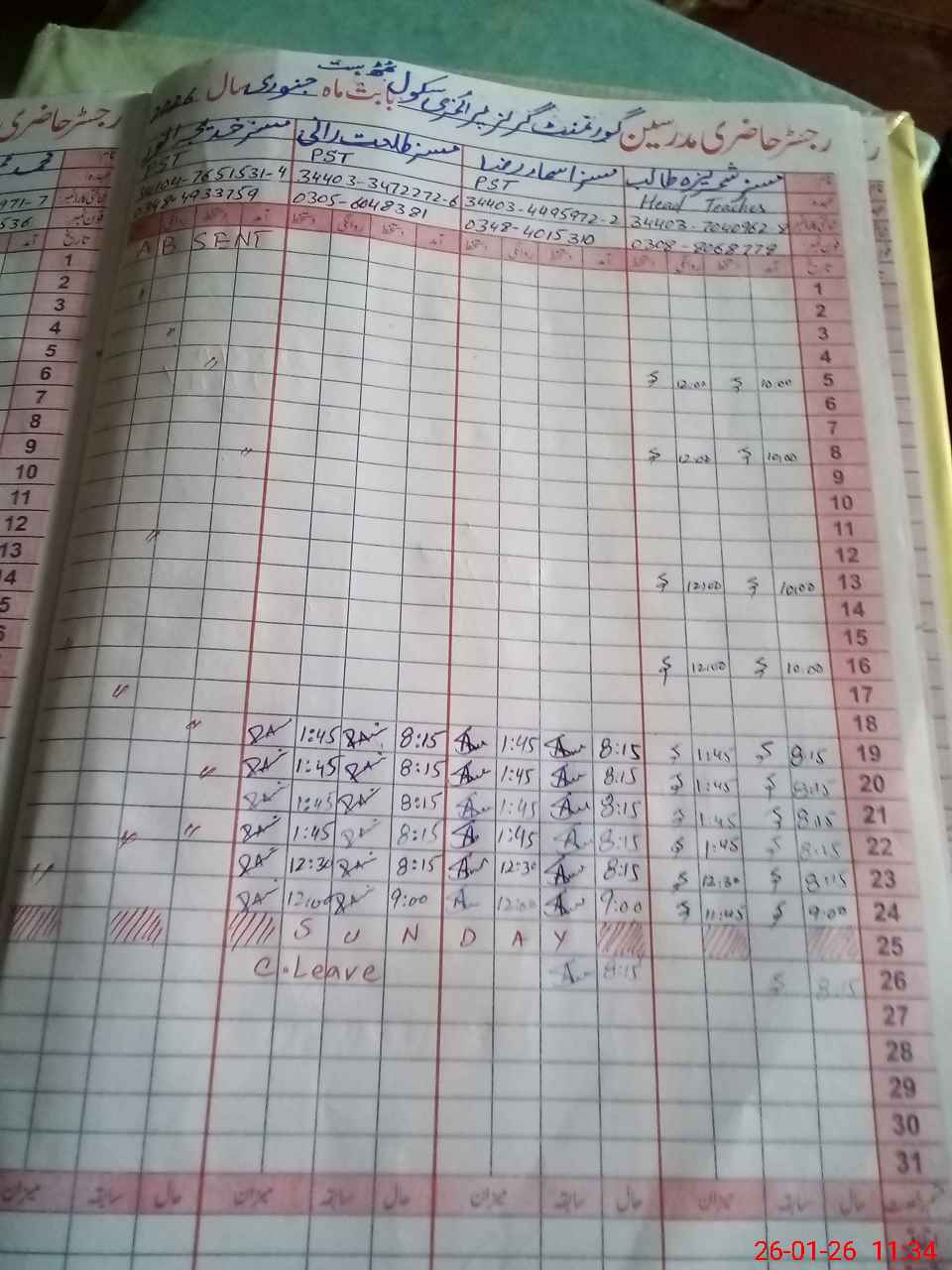 | 34**** | Kh**** An**** | PST Science/Maths | Regular | 0 | 0 | 0 | 0 | 0 | 0 | 0 | 0 | 0 | Absent (Un-Authorized) |
