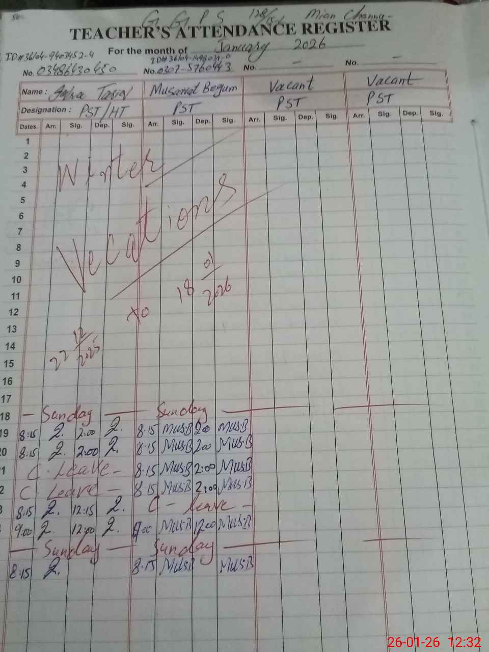 | Name: Iq**** Ta**** Designation: (School Headmaster's/Headmistress's) PST Phone/Cell Number: 03**** |
