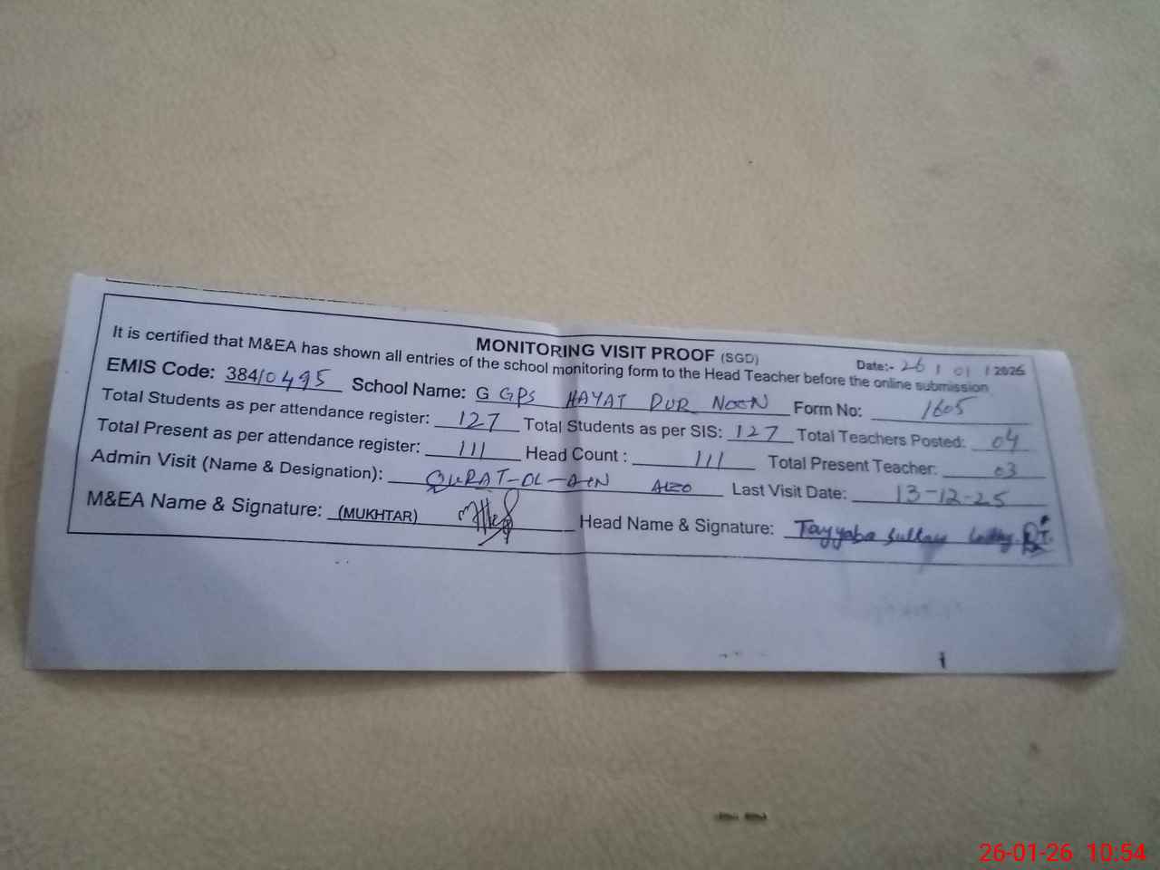 | EMIS Code: 38410495 | Name of School: GGPS HAYAT PUR NOON BHALWAL | |||