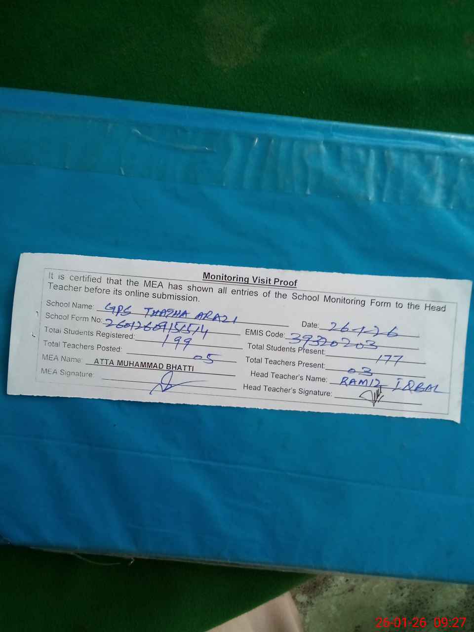 | EMIS Code: 39320203 | Name of School: GPS THATHA ARAZI | |||