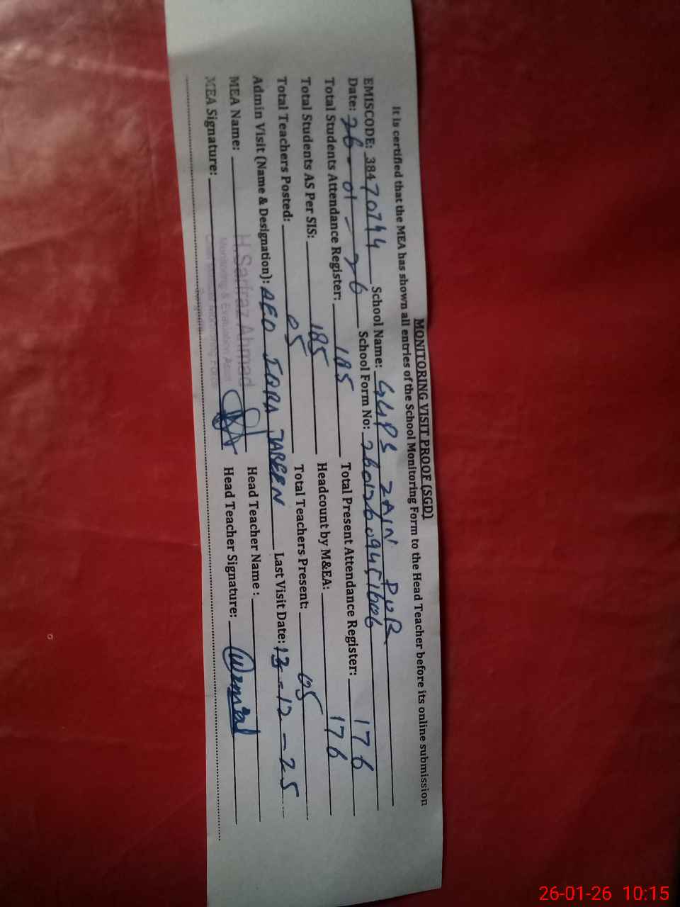 | Certified that this School was Inspected by the Undersigned MEA/DMO Today and the Information Stated Above is as Per Record. | |||||