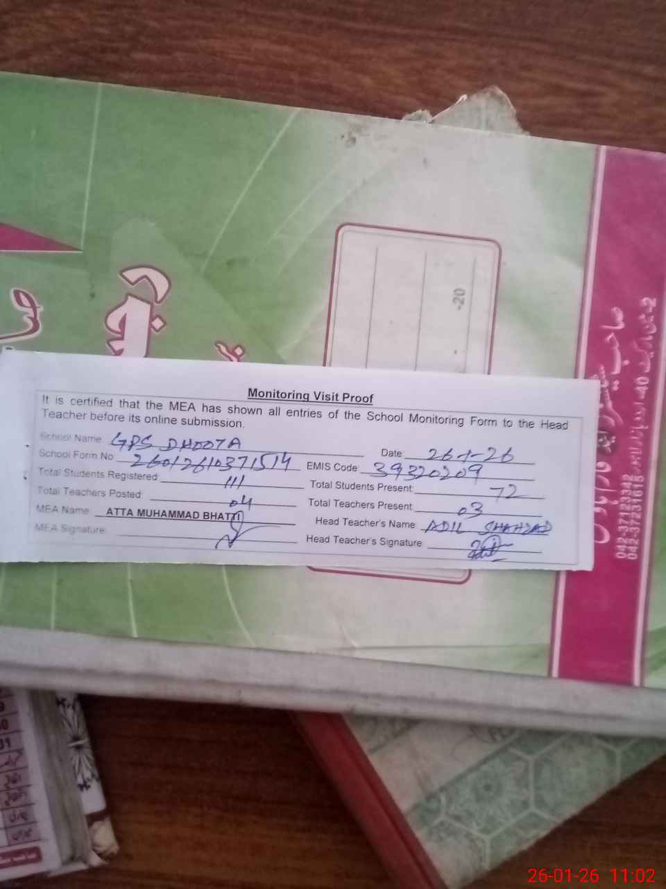 | EMIS Code: 39320209 | Name of School: GPS DHOOTA | |||