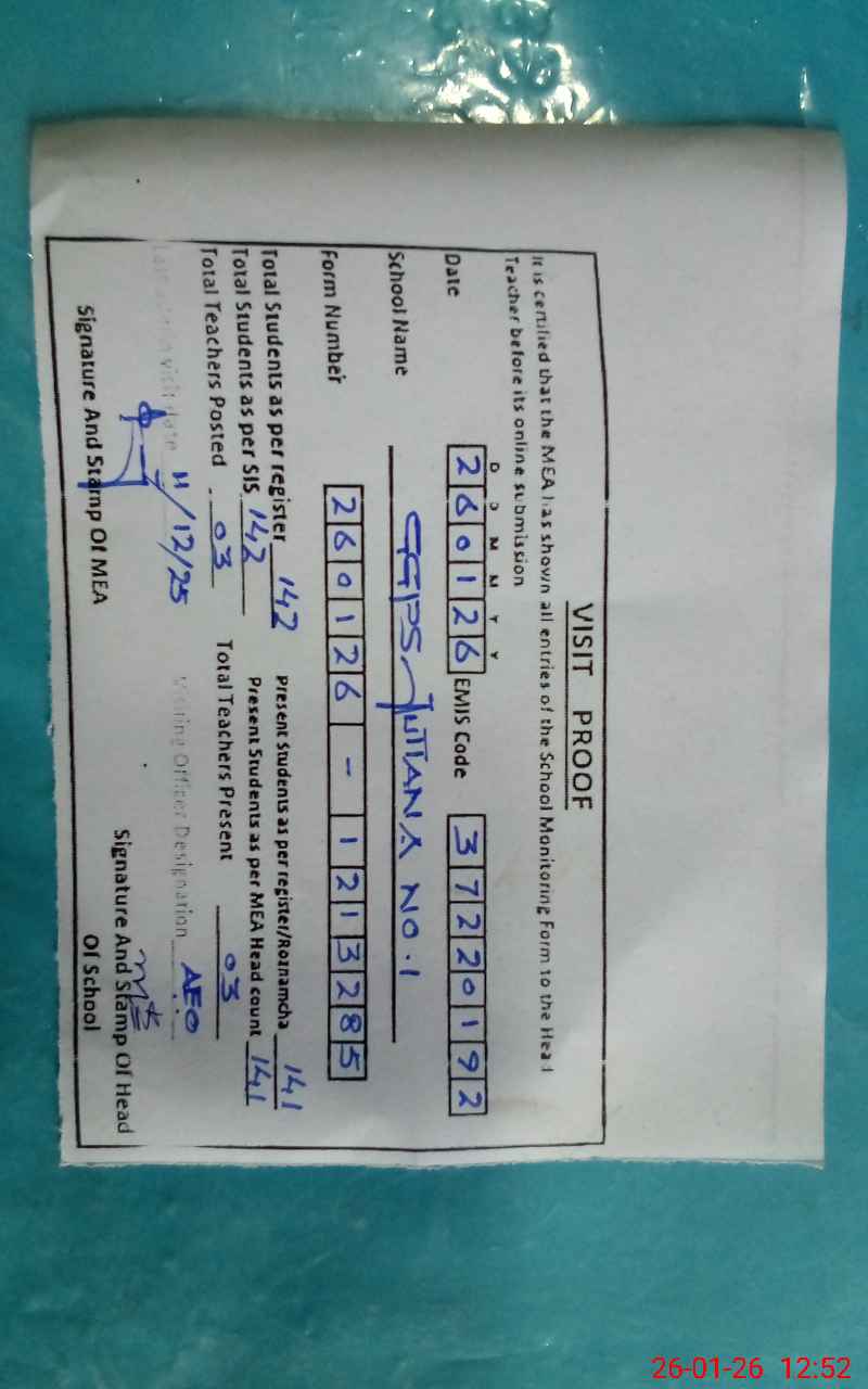 | EMIS Code: 37220192 | Name of School: GGPS JUTTANA NO.1 | |||
