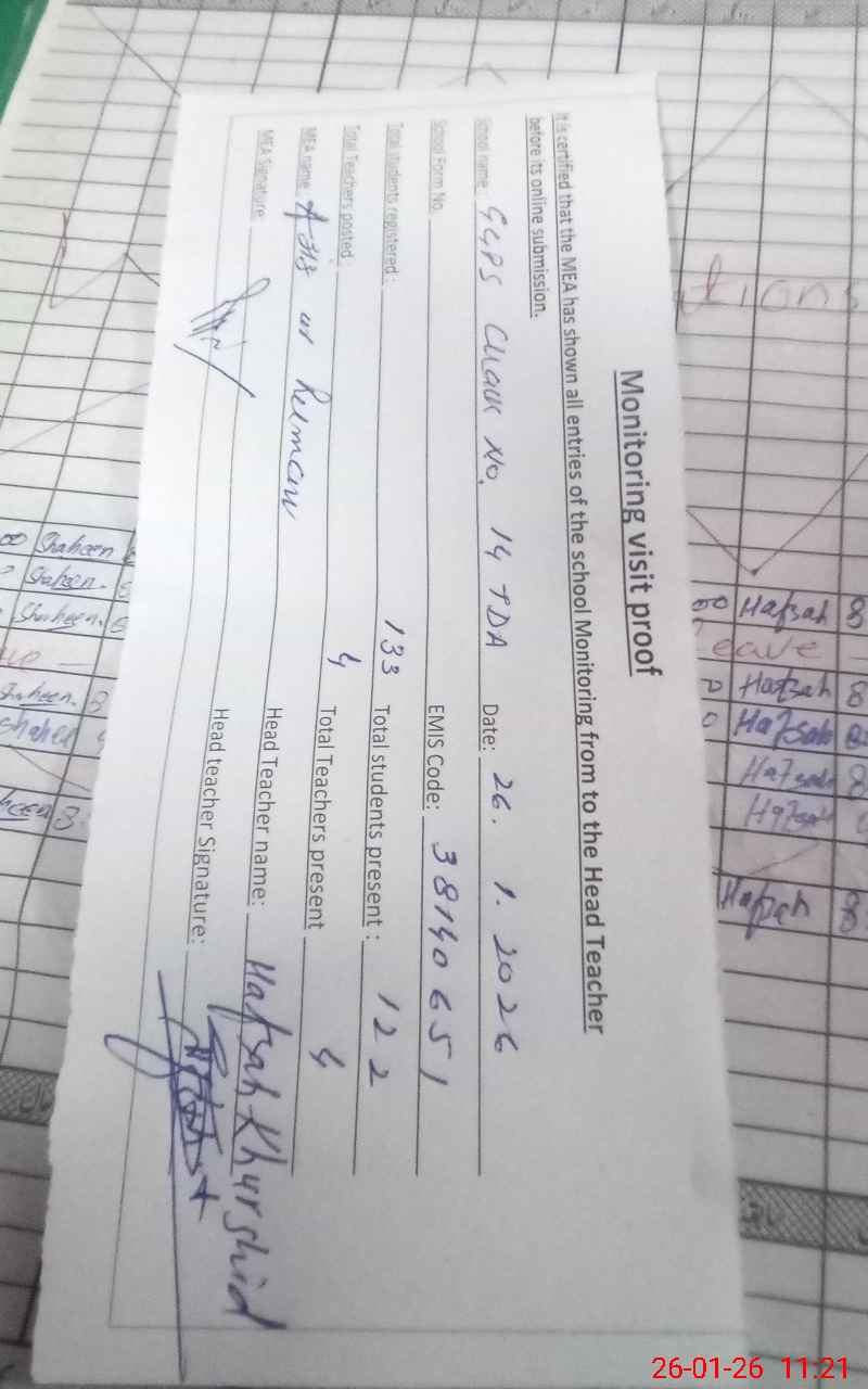 | EMIS Code: 38140651 | Name of School: GGPS CHAK NO.14/TDA | |||