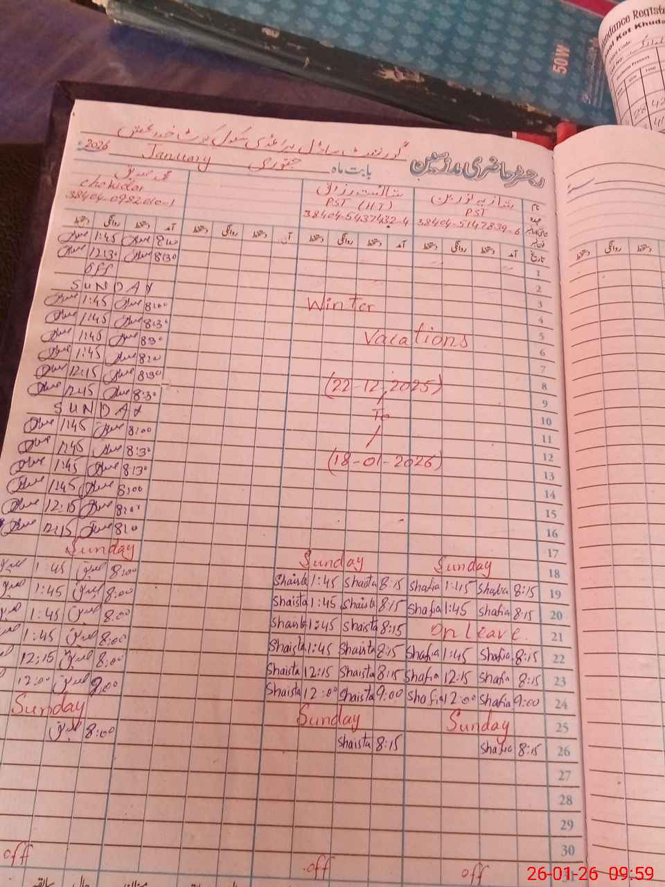 | Name: SH**** RA**** Designation: (School Headmaster's/Headmistress's) PST Phone/Cell Number: 03**** |