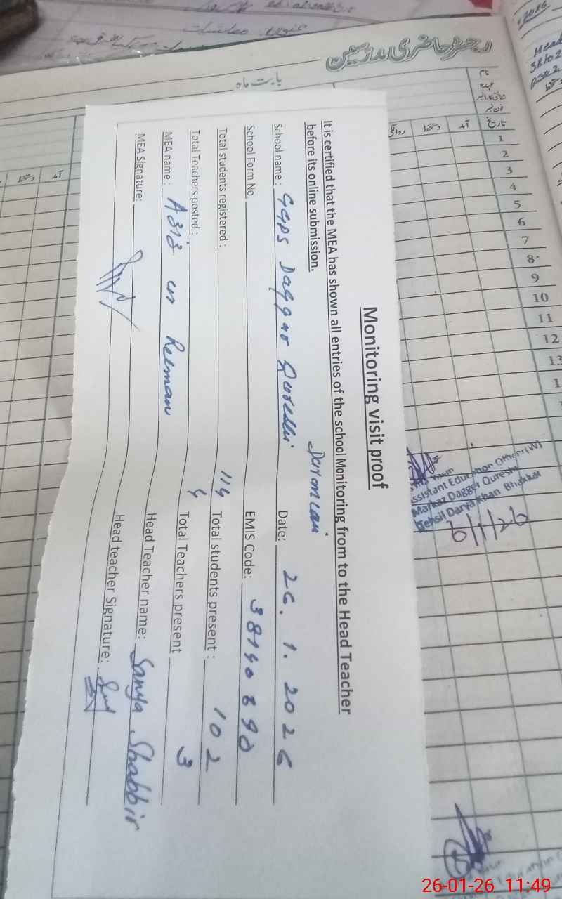 | EMIS Code: 38140690 | Name of School: GGPS DAGAR QURESHI DARMIANI | |||
