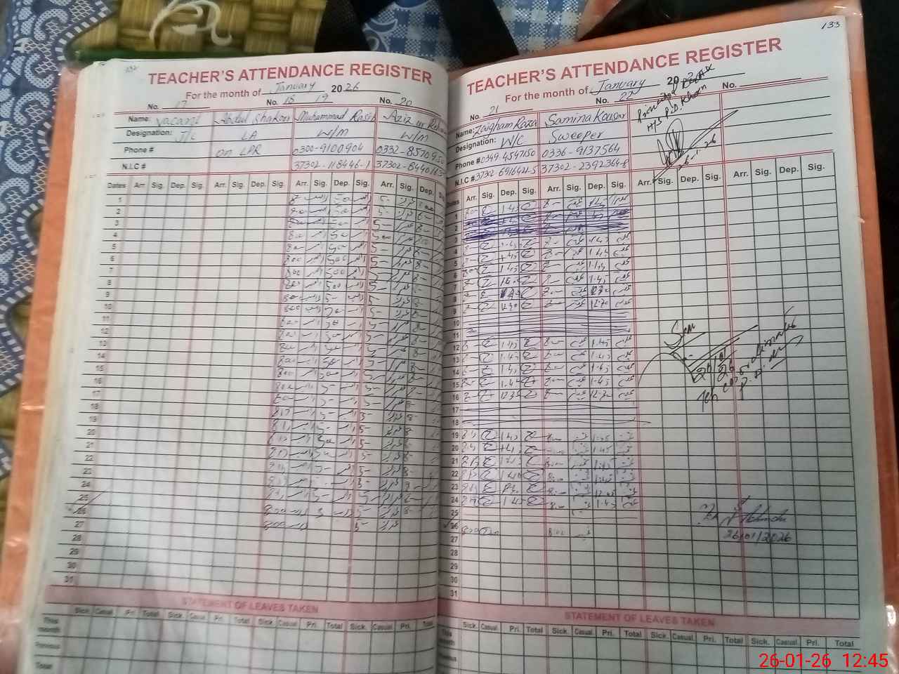 | Name: Ta**** Za**** Designation: (School Headmaster's/Headmistress's) Headmistress Phone/Cell Number: 03**** |