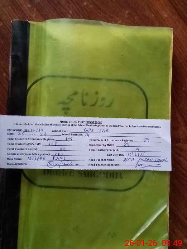 | EMIS Code: 38410164 | Name of School: GPS CHAK NO.3 NB | |||