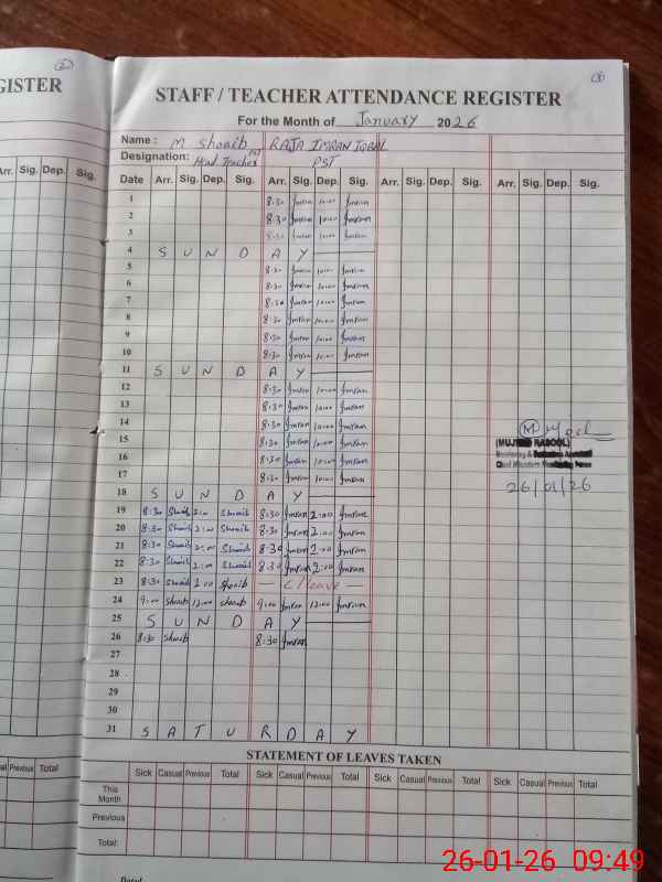 | 38**** | Mu**** Sh**** | PST Science/Maths | Regular | 0 | 0 | 0 | 0 | 0 | 0 | 0 | 0 | 0 | Absent (Un-Authorized) |