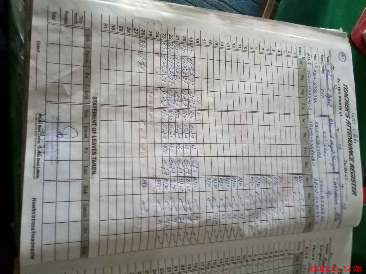 | Name: M.AS**** UL**** Designation: (School Headmaster's/Headmistress's) SST SC Phone/Cell Number: 03**** |